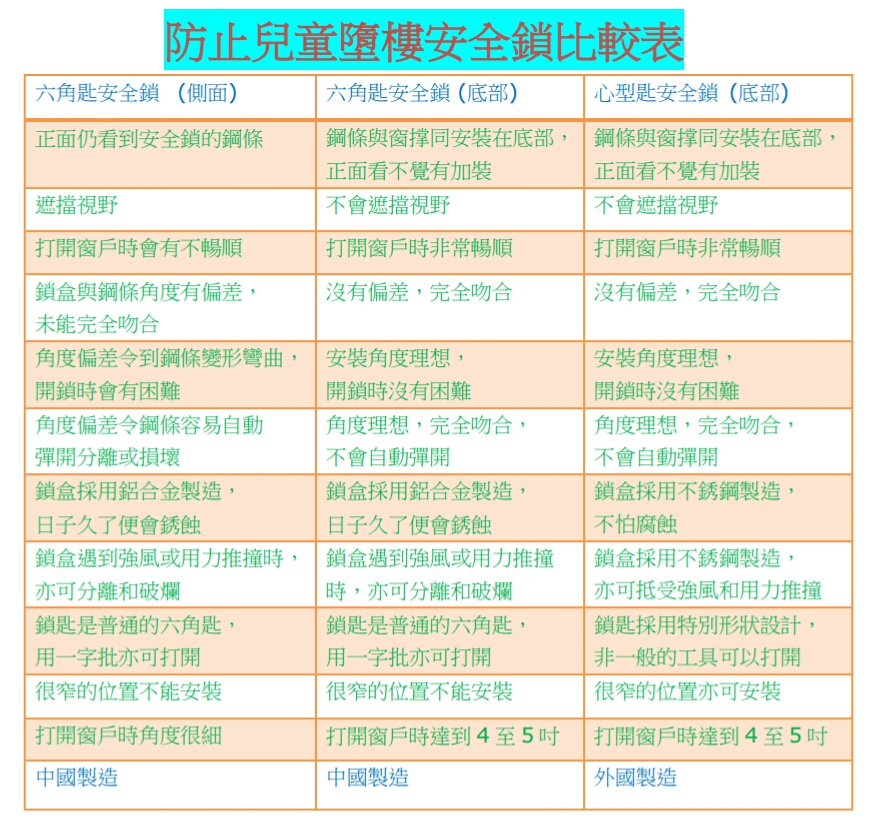防止兒童墮樓安全鎖