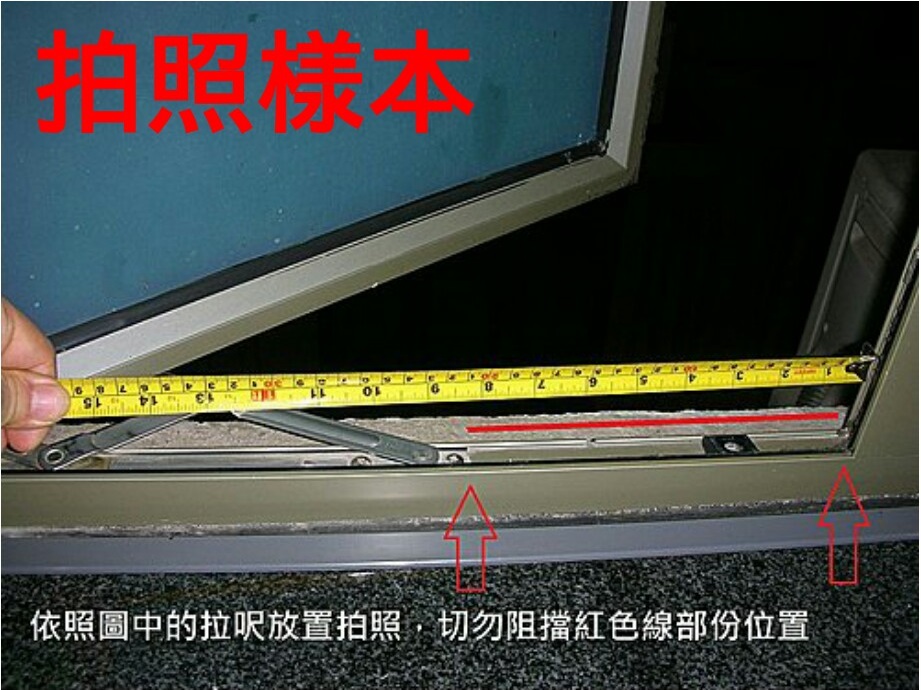 1.首先,將每個窗安裝的位置,連同拉呎一齊拍照(請參考 拍照樣本)